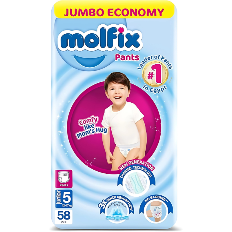 حفاضات مولفيكس بانتس للأطفال مقاس5 – 58 حفاضة